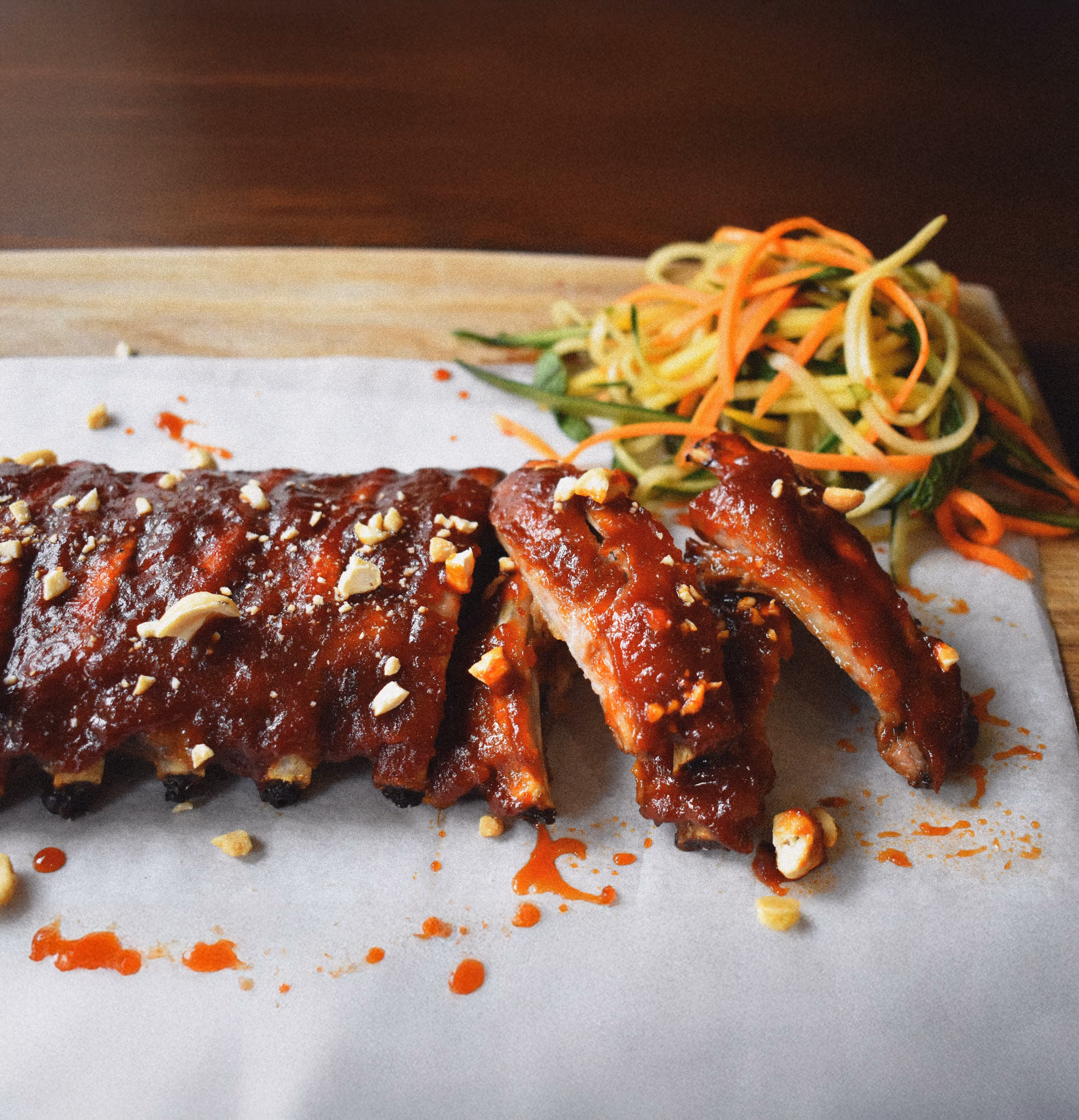 Brush 2 tbsp per portion onto wings, ribs & prawns to finish